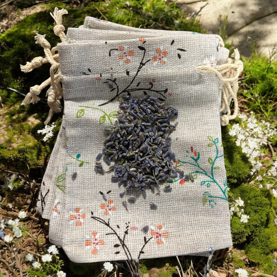 Lavender sachets are versatile for adding a calming and relaxing scent to various areas, acting as a natural air freshener and moth repellent. They are also used for aromatherapy benefits, such as promoting sleep and reducing stress by placing it under your pillow!