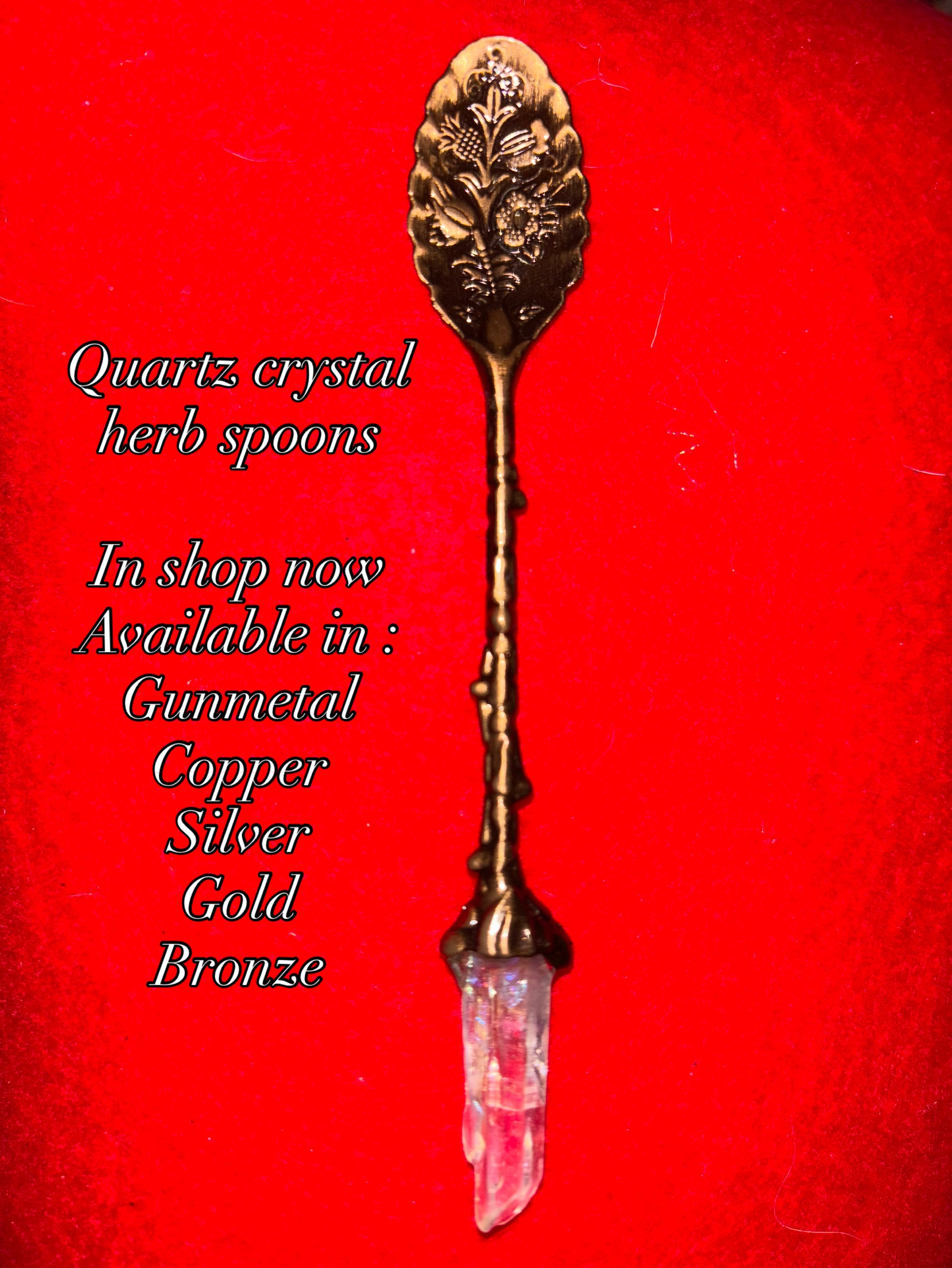 Quartz crystal herb spoon, witchcraft supplies