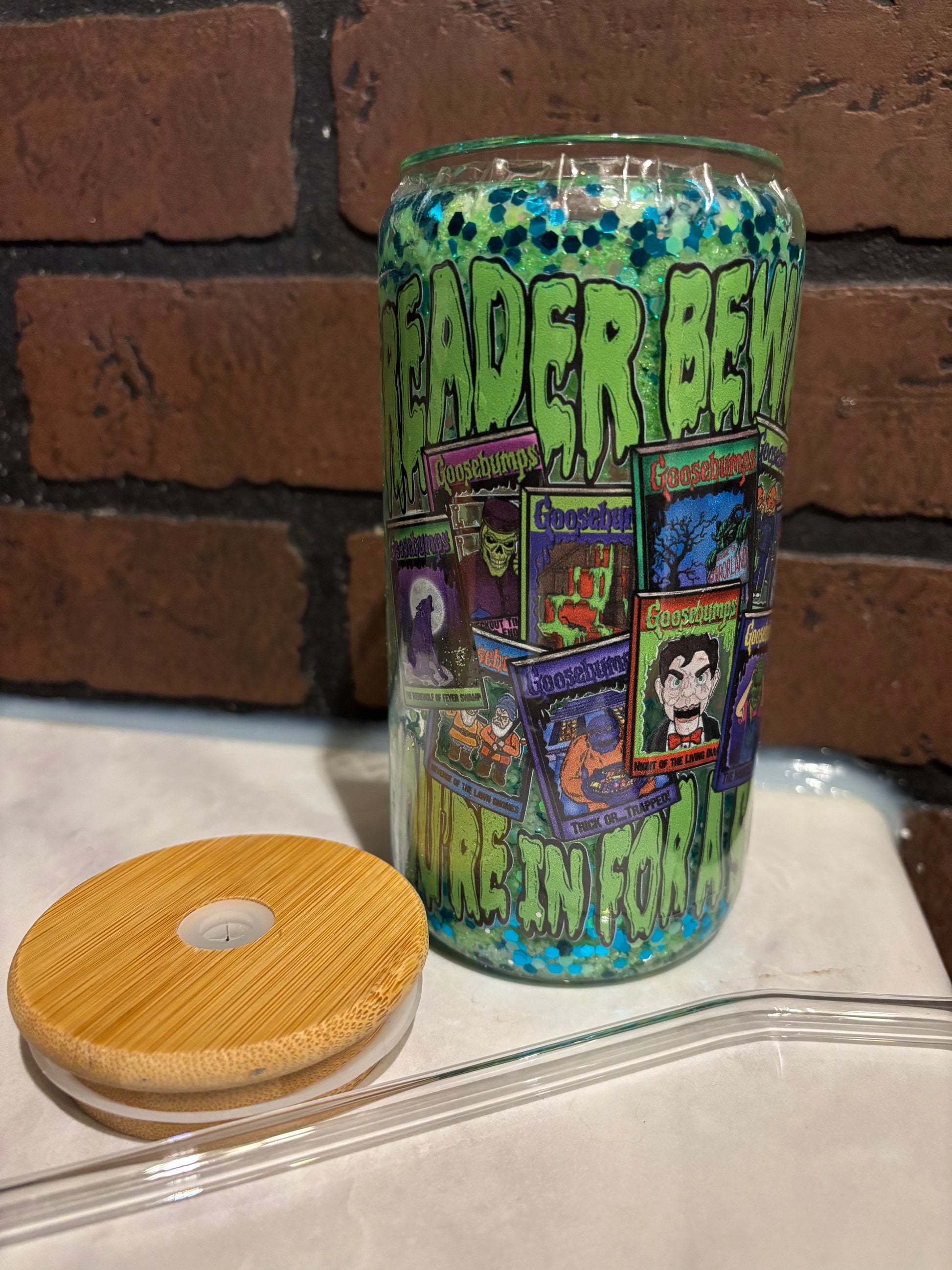 Snow globe Reader beware glass cup
